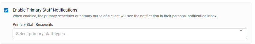 For Authorizations Expiring Alerts, select the Notification Recipients and determine if the primary scheduler or primary nurse should also receive notifications by selecting the box and the corresponding roles