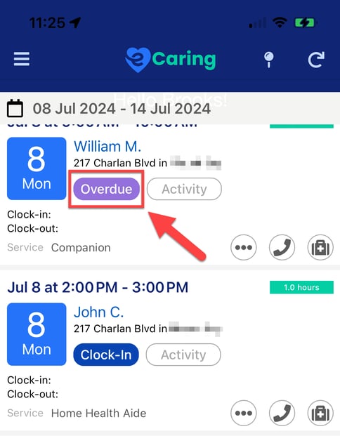 2. Overdue: Shift is past the start time