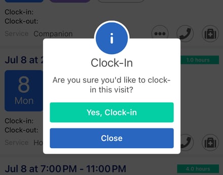 You'll be prompted to confirm that you want to clock in for this shift.