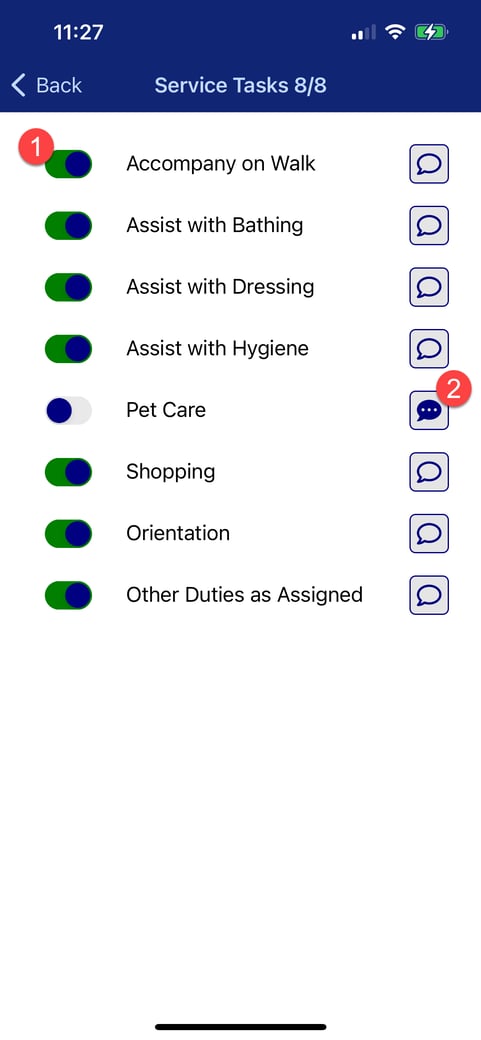 1) When a task has been completed, toggle the button so it turns green. This indicates the task has been completed.