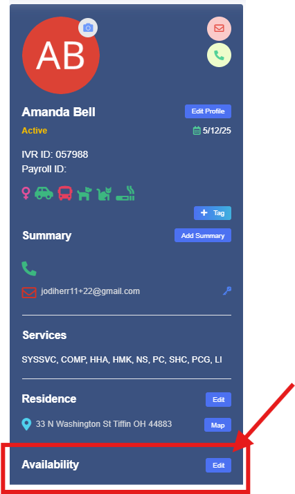 On the left-hand side of their profile, select Edit next to Availability.