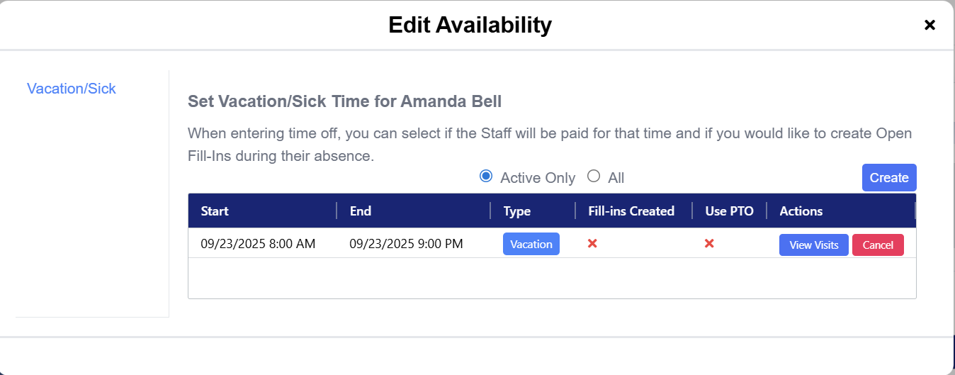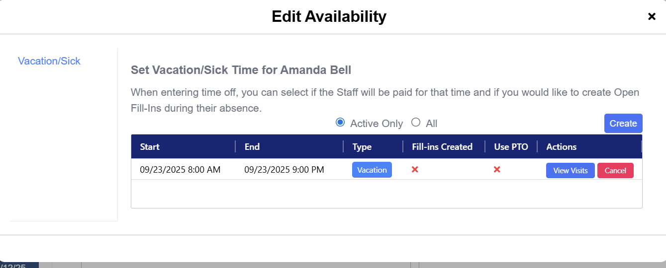 Entering availability and time off for staff members in eCaring allows you to effectively track and manage your staff schedules.