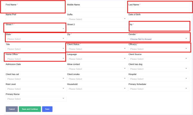 This brings you to the new client page to enter Demographics information first.