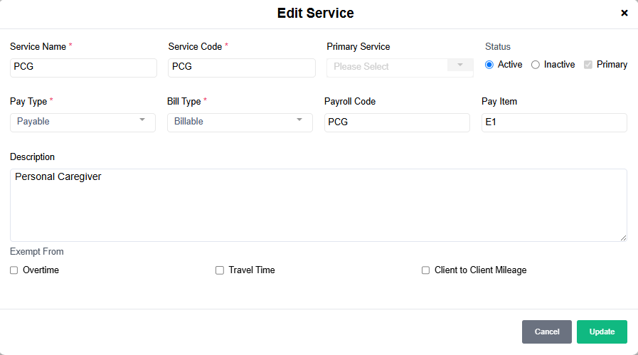 Services and Service Codes are utilized within various areas of eCaring, including Authorizations, Scheduling, Payroll and Billing. It is important to take the time to propery setup your Services as this step is the foundtation of your eCaring tenant.