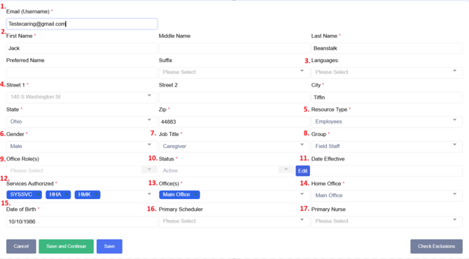 - NPI = Enter in the staff NPI if avialble. This is not a required area but maybe needed to EVV.