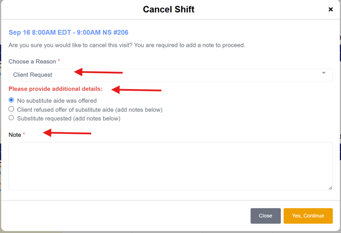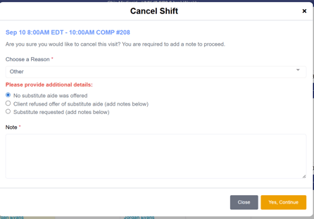 This will open the Cancel Shift window.