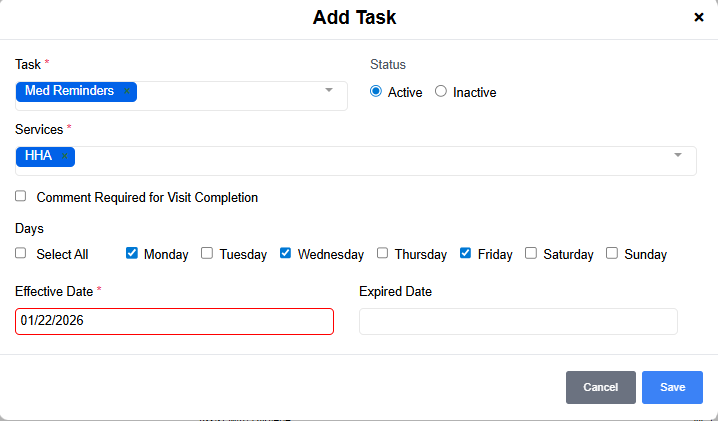 3. EVV Task ID- Enter the EVV task ID if utilizing EVV
