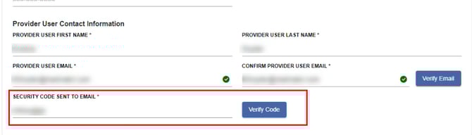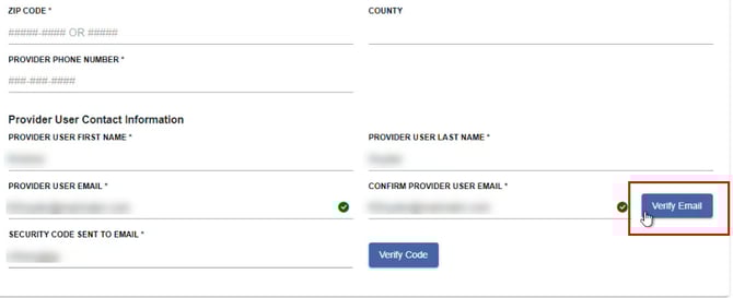 After entering the Provider User Contact’s e-mail address, click Verify Email.