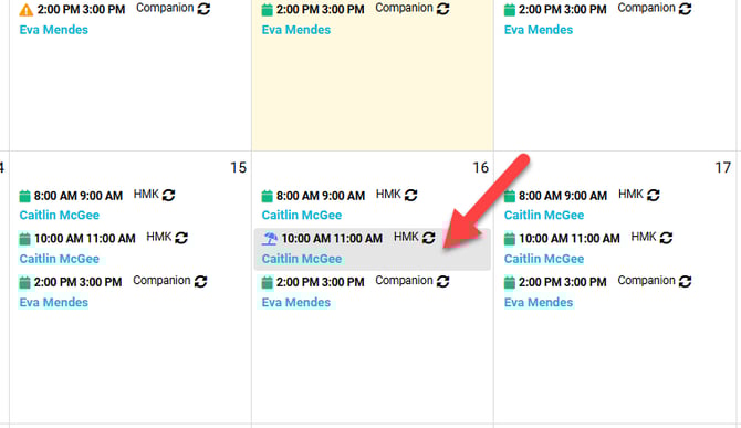 Client Calendar View:
