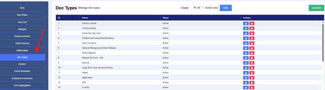 - In the Admin Dashboard, select Doc Types