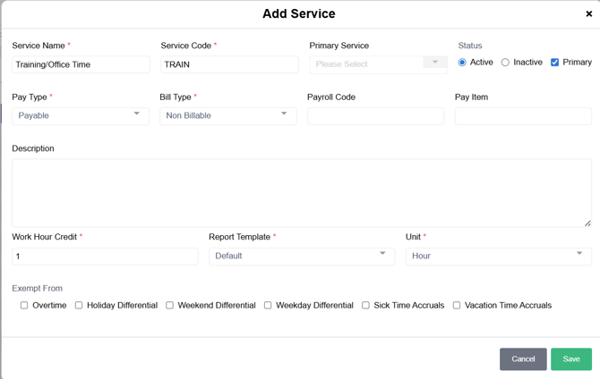 Step 2: Add a Service Type to Reflect the Training