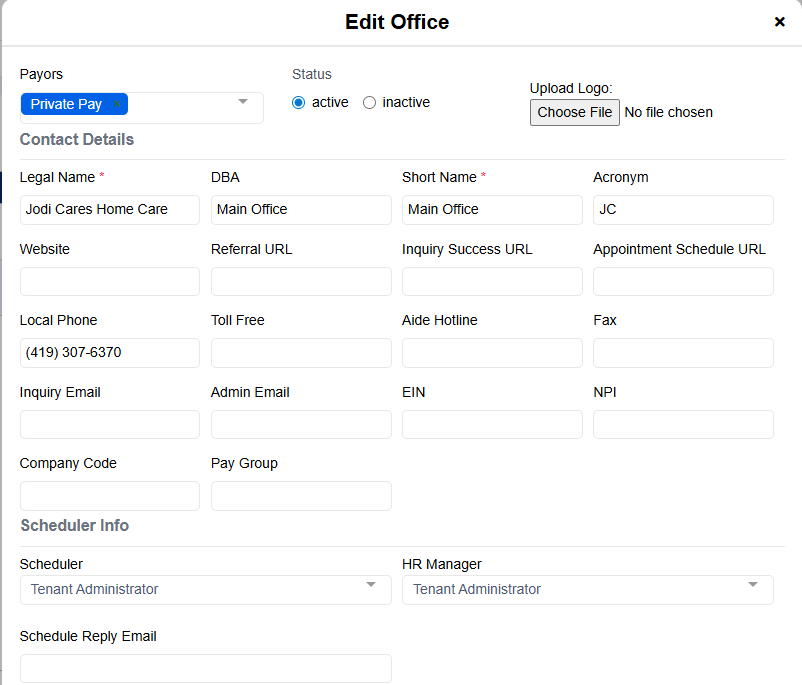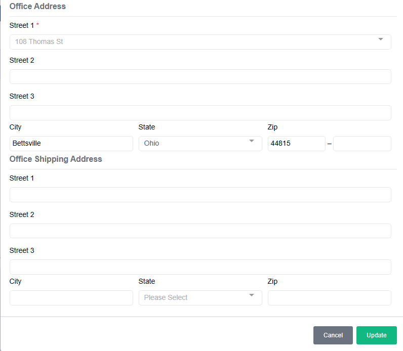 - Click on the blue pencil icon next to your office name. A pop-up window will appear