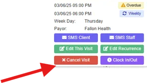 This article will walk you through the process of using the Quick Action feature to edit the visit or recurrence, Cancel the visit or perform a Manual Clock-in/Out.