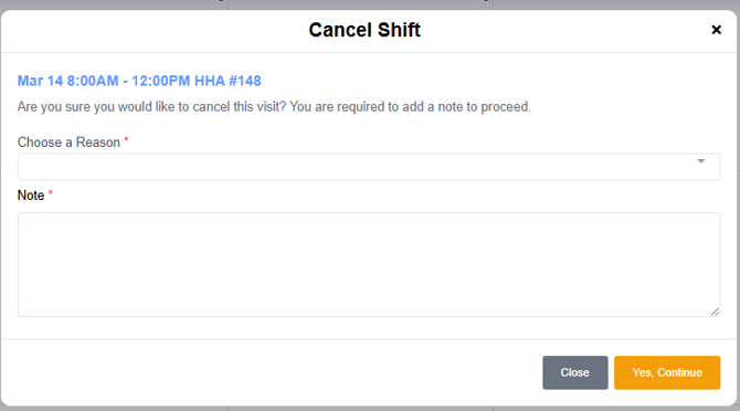 - Select the Reason, enter a Note, and select Yes, Continue