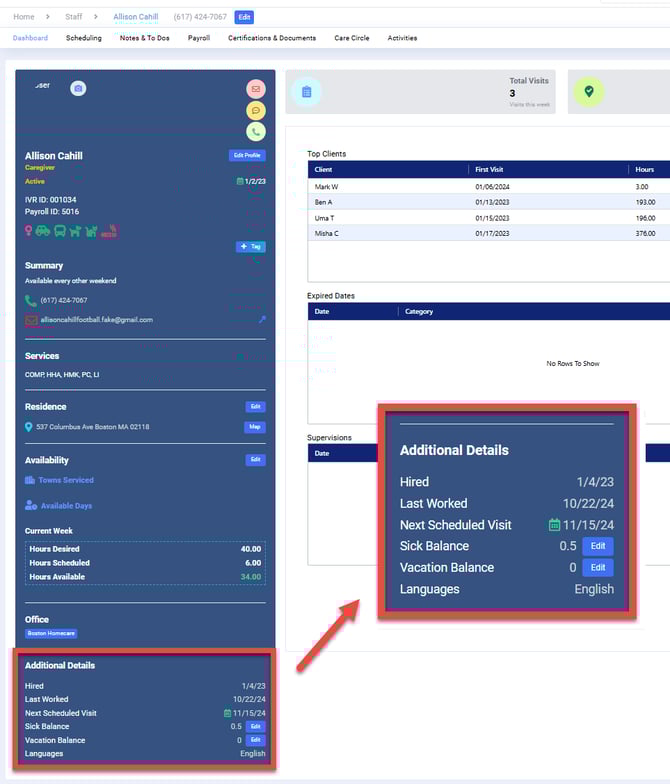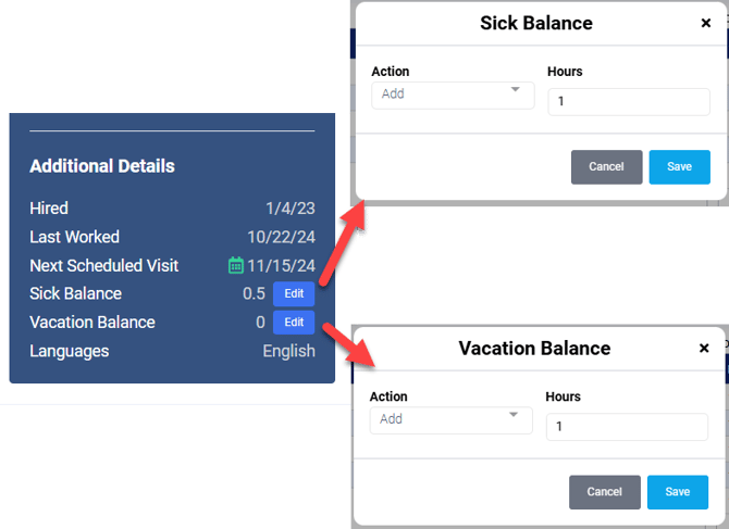 Under Additional Details you can Edit the Sick Balance and the Vacation Balance by clicking the Edit button.