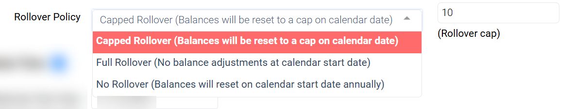 - Capped Rollover > Enter the amount of capped hours to be rolled over