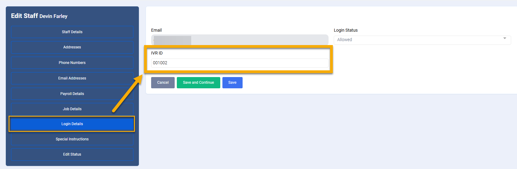 A: The aide will need to enter their IVR ID. This can be found in the aide's profile under Edit Profile > Log In Details.